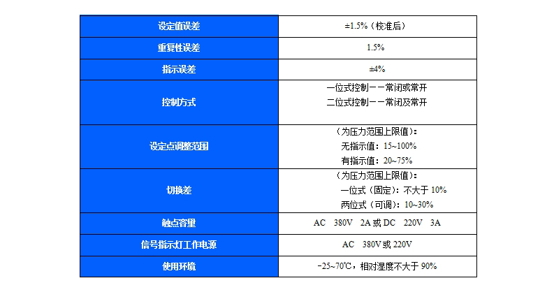 YTK-18/03壓力控制器適用于測(cè)量無爆炸危險(xiǎn)的流體介質(zhì)的壓力并進(jìn)行位式(一位式或兩位式)控制。控制器是借助彈性元件的作用以驅(qū)動(dòng)微動(dòng)開關(guān)工作的壓力控制儀表??刂破骶哂薪Y(jié)構(gòu)合理、動(dòng)作準(zhǔn)確、使用可靠、開閉頻次高、抗振性好和觸點(diǎn)容量大等特點(diǎn)??刂破靼幢粶y(cè)(控)對(duì)象的各異,分別制成有壓力指示和無壓力指示(各有普通型和耐蝕型)等多種類型。兩位式控制的控制器設(shè)有可供調(diào)節(jié)切換差的裝置,以使被測(cè)(控)介質(zhì)的上、下切換值調(diào)至合適的控壓范圍內(nèi)。此外,控制器還設(shè)有信號(hào)指示燈,以使控制電路在斷開或接通的同時(shí)發(fā)出燈光信號(hào)。