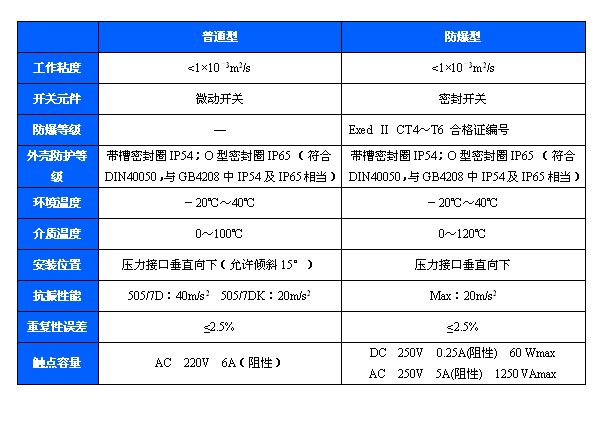 505/7D防爆壓力開(kāi)關(guān)用于含油霧的中性氣體。