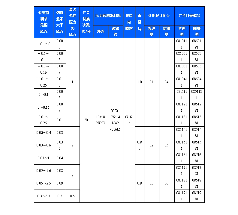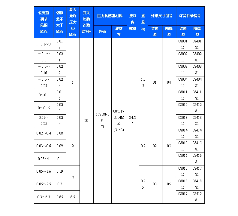 511/7D防爆壓力控制器采用波紋管式的傳感器,可用于腐蝕性氣體和液體介質(zhì)。511/7D防爆壓力控制器的設(shè)定值可調(diào),調(diào)節(jié)范圍-0.1~6.3MPa。