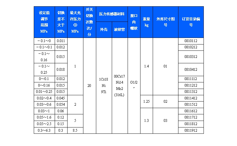 511/7DZ雙觸點壓力控制器采用波紋管式的傳感器,可用于腐蝕性氣體和液體介質(zhì)。511/7DZ雙觸點壓力控制器的設(shè)定值可調(diào),調(diào)節(jié)范圍-0.1~6.3MPa。
