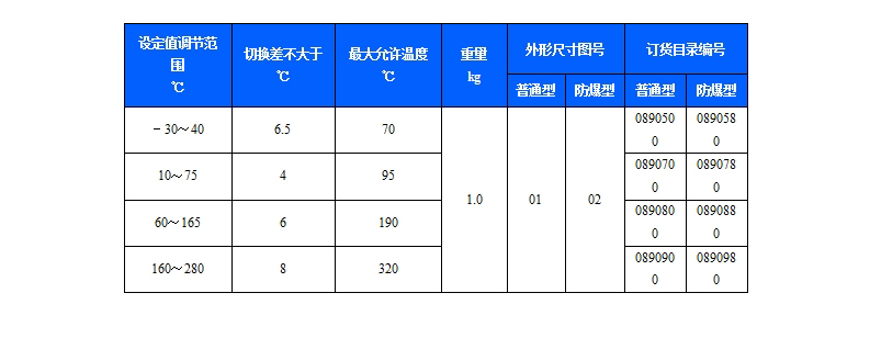 541/7T溫度控制器采用帶毛細(xì)管溫包式傳感器,可用于流動(dòng)的中性氣體和液體介質(zhì),如果介質(zhì)為腐蝕性,安裝時(shí)可選用不銹鋼溫包保護(hù)套套在銅質(zhì)溫包外(見(jiàn)附件)。541/7T溫度控制器的設(shè)定值可調(diào),調(diào)節(jié)范圍-30~280℃。