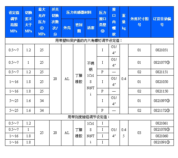 505/8D壓力開關(guān)采用無泄漏活塞式的傳感器,可用于含油霧壓縮空氣等中性氣體和液壓油、水油乳濁液及對壓力傳感器材料無腐蝕作用的有良好潤滑性能的液體介質(zhì)。505/8D壓力開關(guān)的設(shè)定值可調(diào),調(diào)節(jié)范圍0.5~25MPa。